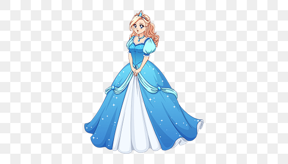 这是一款穿着蓝色礼服的美丽公主矢免抠 PNG。